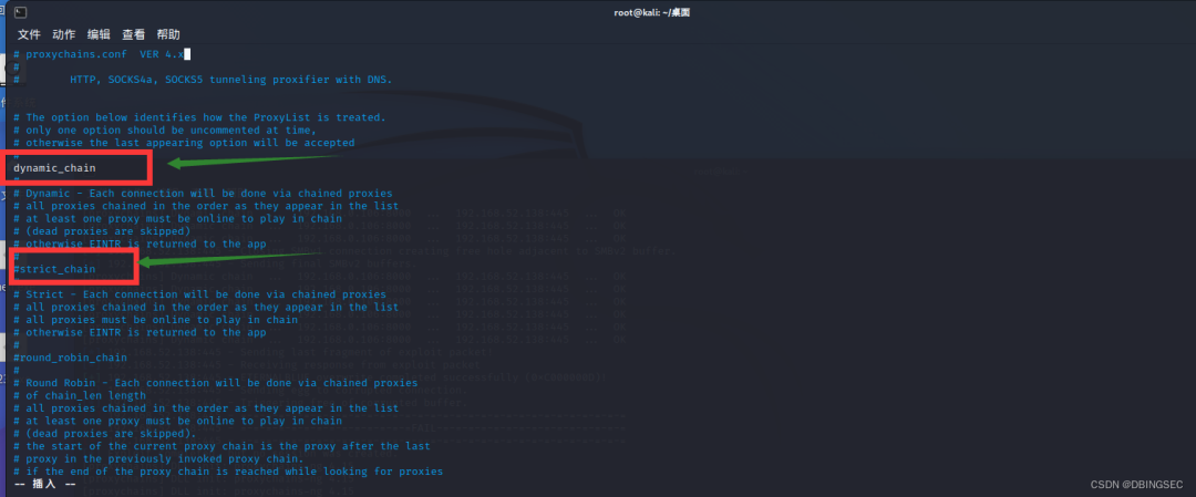 vi /etc/proxychains4.conf #修改如图下面即可修改后的截图: