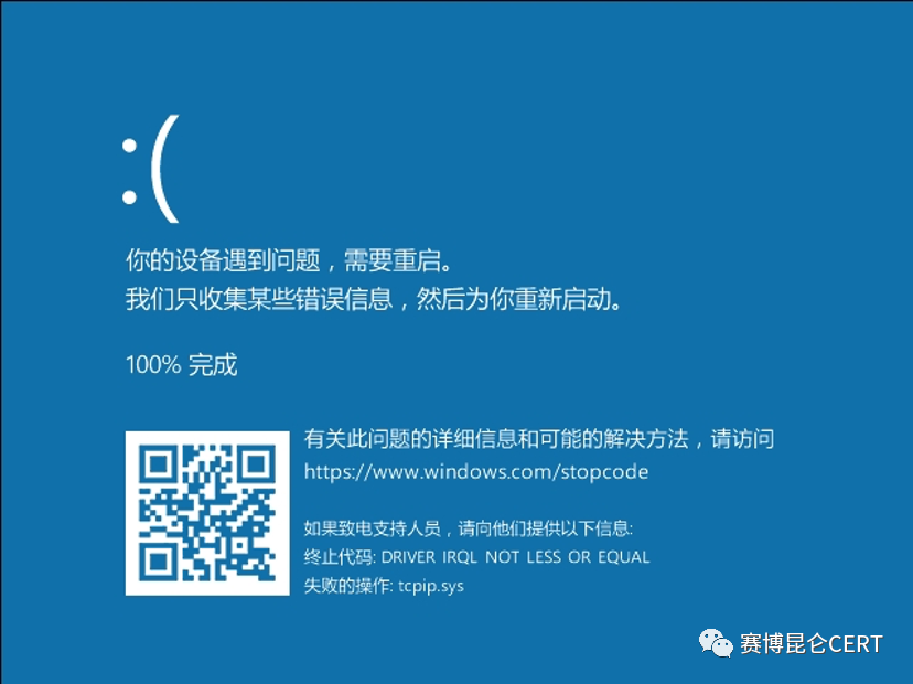 使用该 ICMP 漏洞实现 tcpip.sys 驱动远程崩溃: