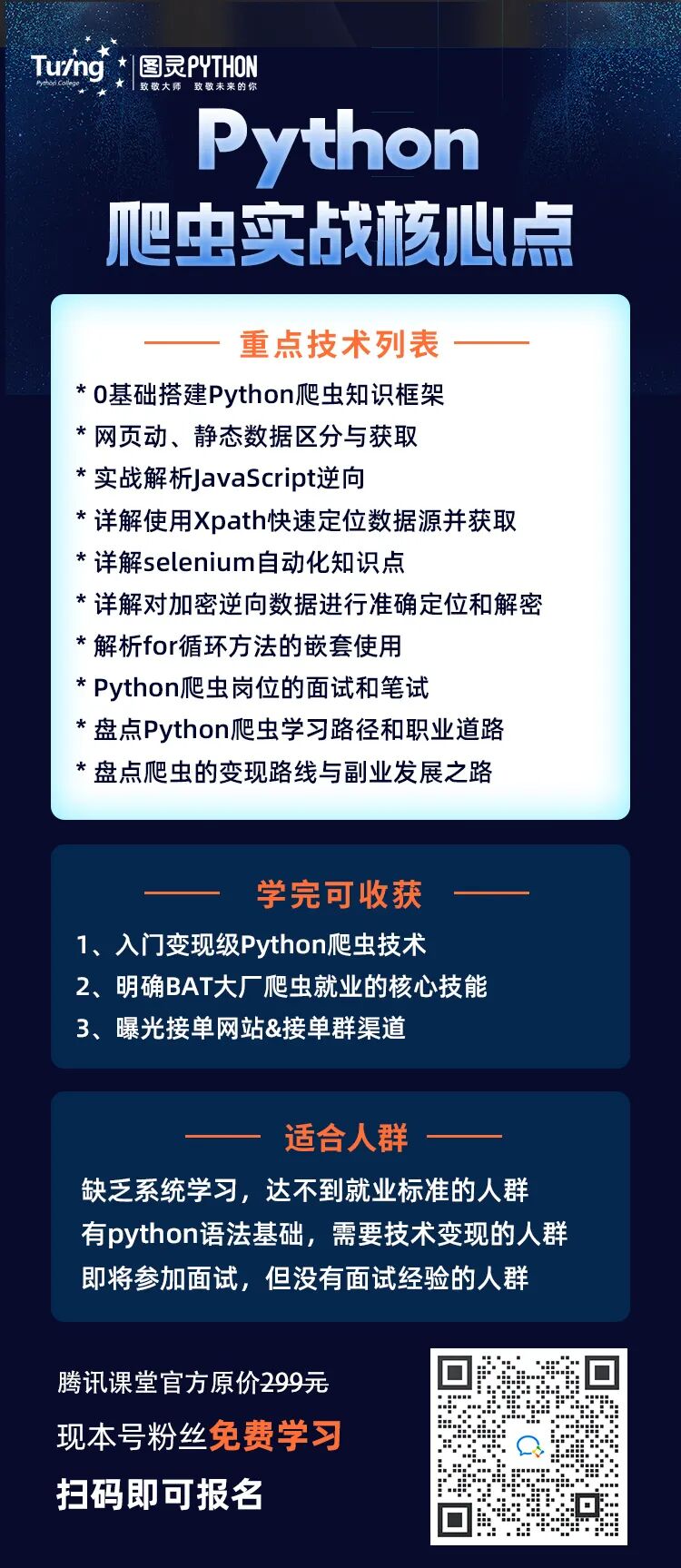 这是一套专讲Python爬虫与爬虫兼职的实战课程。迄今为止已经帮助了超1W学员快速进阶!本次课程将由数据竞赛获奖大佬亲身指导,带领大家进行前沿技术理论+副业项目实战的综合技术速成训练!