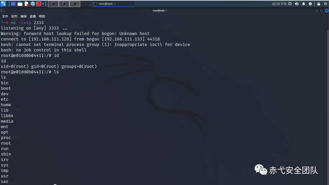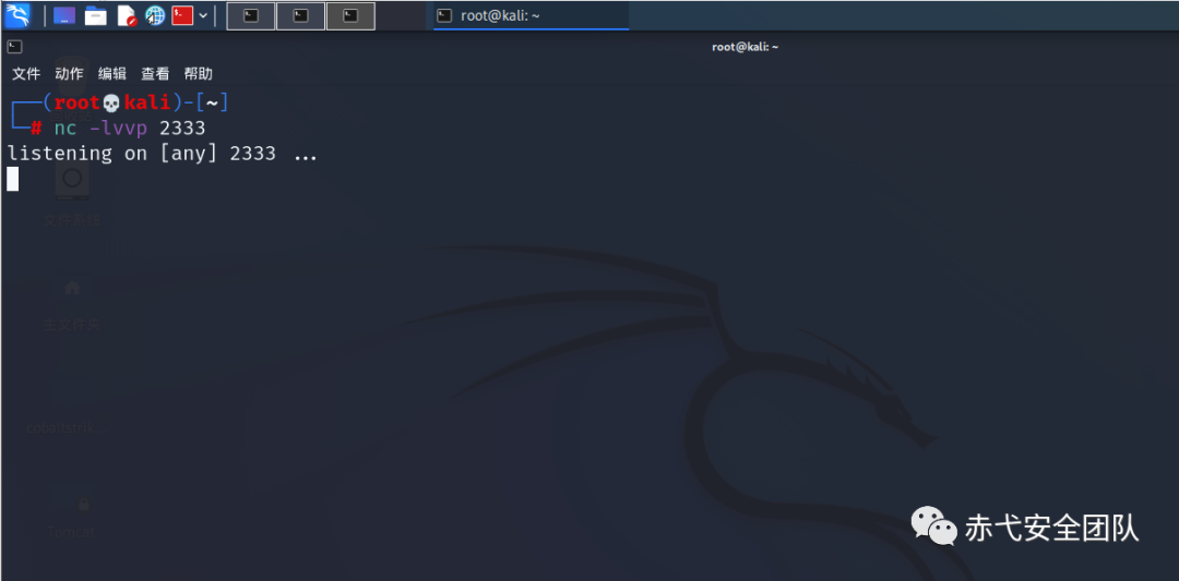 5、攻击机开启2333端口监听,等待靶机将shell送上来。