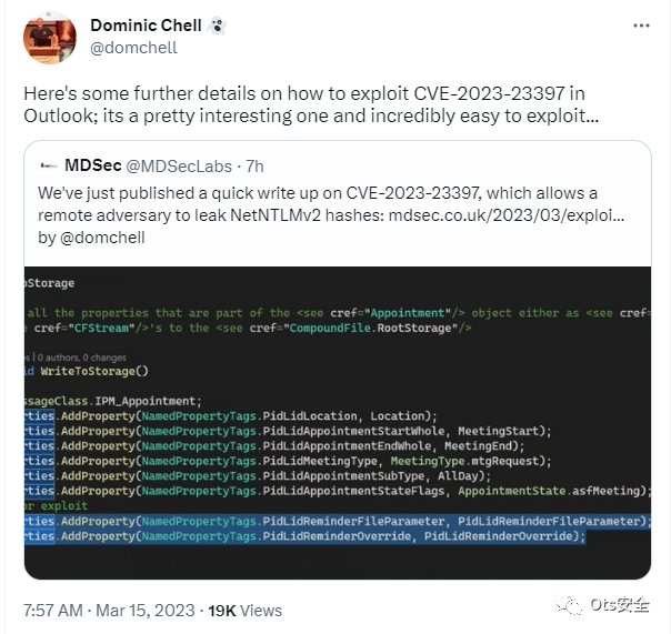 原文地址:https://www.mdsec.co.uk/2023/03/exploiting-cve-2023-23397-microsoft-outlook-elevation-of-privilege-vulnerability/