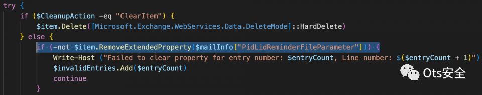 审计脚本的审查表明它专门在邮件项目中寻找PidLidReminderFileParameter属性,并在找到时提供“清理”它的选项: