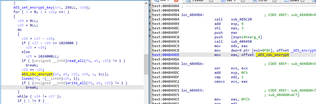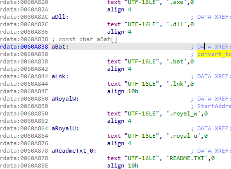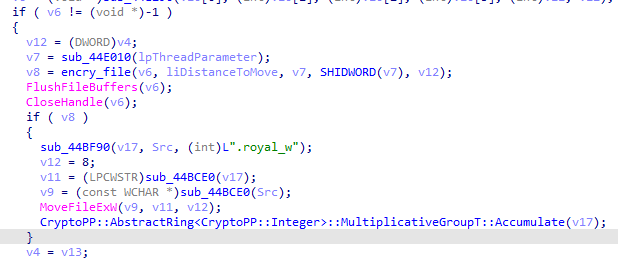 之后使用了 OpenSSL 库和 AES256 算法进行文件加密,最后将文件改为 .royal_w 后缀。