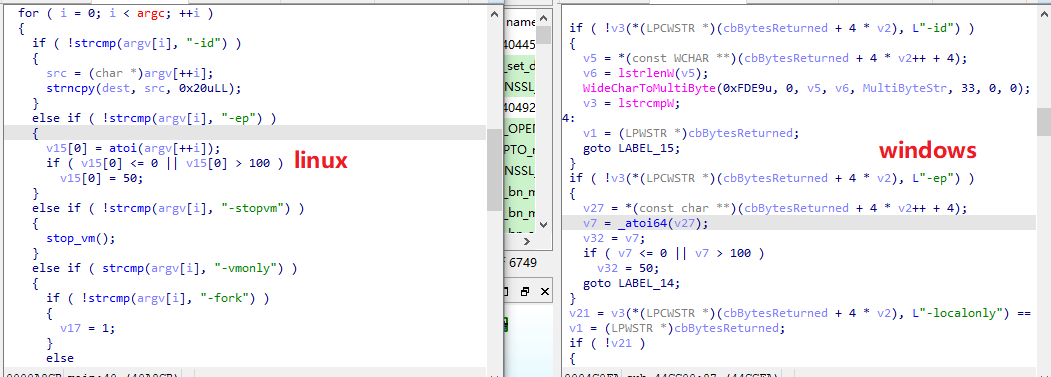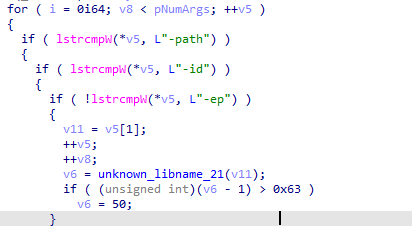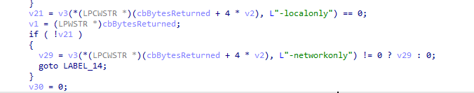 该恶意软件需要通过参数执行,在低版本中存在三个参数分别为,-path\-id\-eq在最新版中增加了两个参数 -localonly和-networkonly。