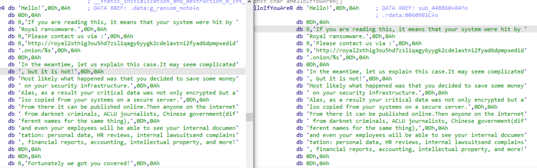 通过分析并对比 Royal Windows 版本发现,判定该样本为 Royal 家族最新Linux版本。