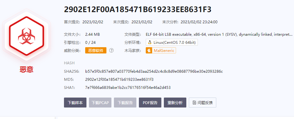 Royal Linux 样本通过微步云沙箱在2023年2月2日捕获。