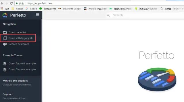 导出的***.cstrace文件可以通过perfetto网站:https://ui.perfetto.dev/,点击 open with legacy UI打开。