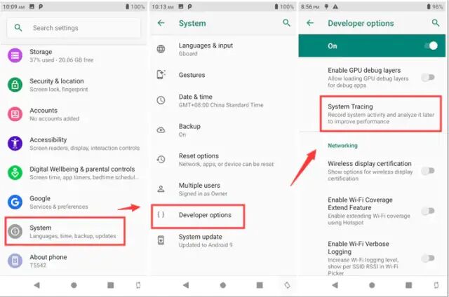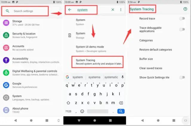 进入Settings >> System >> Developer options >> System Traceing点击即可。
