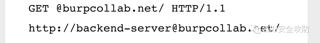 • Apache HttpComponents库的安全问题,允许请求行可以不以/开头,导致指定url为@burp-collaborator.net,最终后端转发被重定向,请求的地址为http://[email protected]/