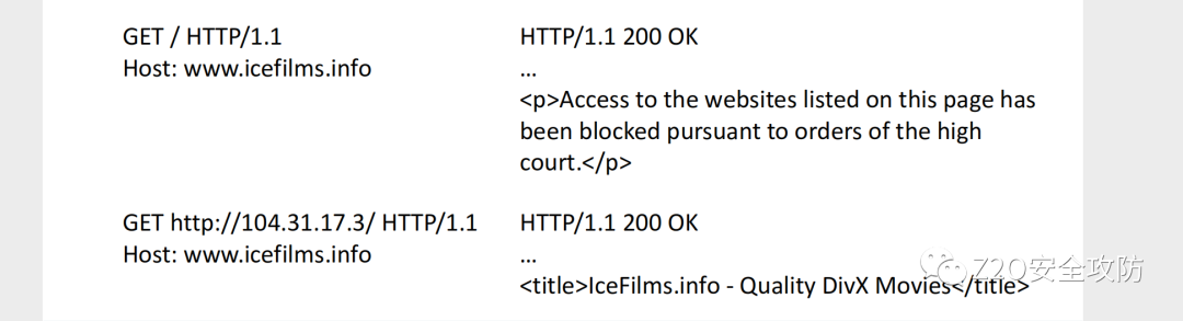 • 请求行覆盖host字段,下面的图中已经知道了www.icefilms.info真实ip地址[1]