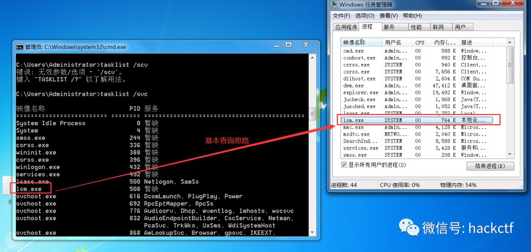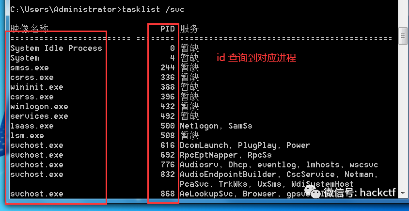 3.查看进程id对应的具体进程是什么 #tasklist /svc
