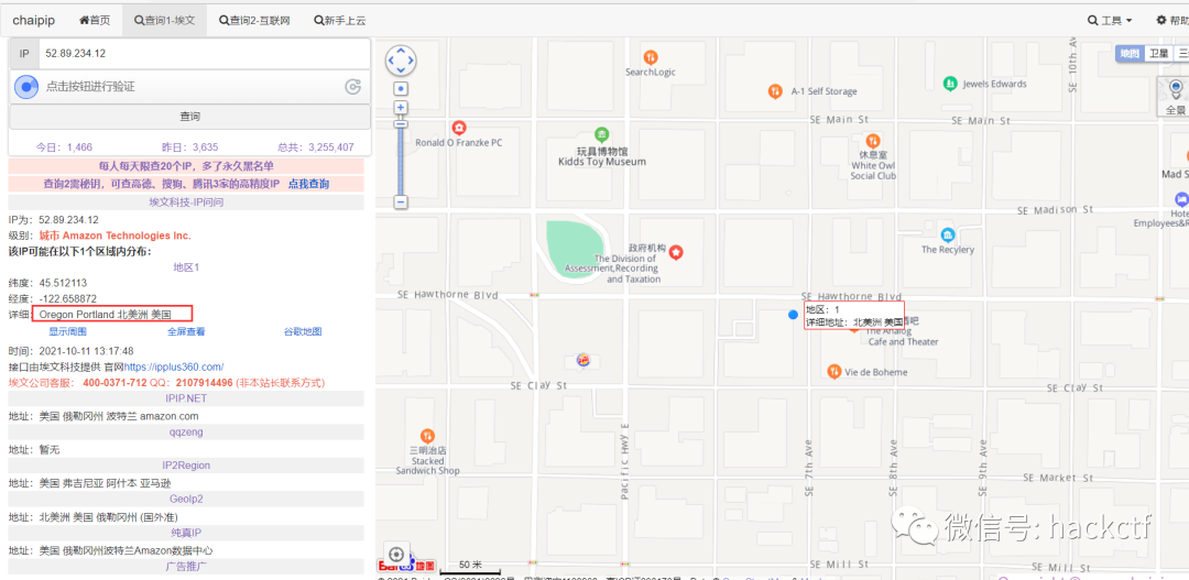 根据获取到的IP地址查询地址物理位置,初步判断是否为攻击者真实IP,或者是代理IP