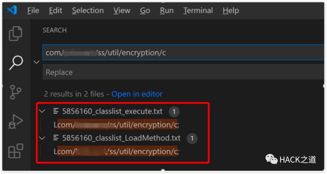 通过上图调用栈,将encryption的类名进行全文搜索,关联到是5856160这个dex文件: