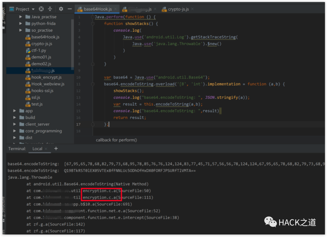 既然body的iv部分使用了base64编码,下一步立马想到对“某APP”进行base64的hook,因为他的request请求体部分肯定调用了base64加密,js代码如下: