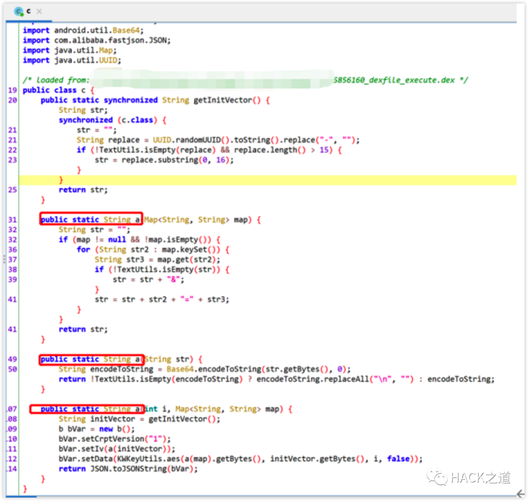 Java.perform(function () { var name = "com.xxx.xx.util.encryption.c";