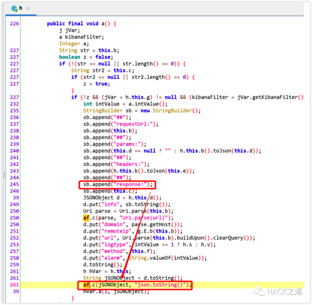 再进一步分析,然后发现com.xxx.xx.h.a方法有响应内容输出: