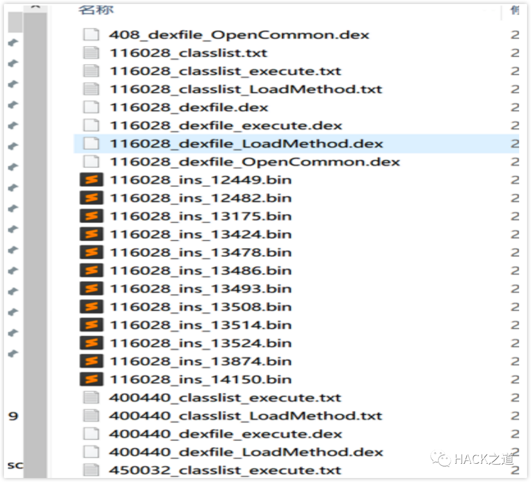 然后使用了脱壳机进行脱壳,脱壳机拖出了很多dex文件,最终目的是想知道 “明文”、“密文”相关的函数在哪个dex文件(仅展示部分文件)。