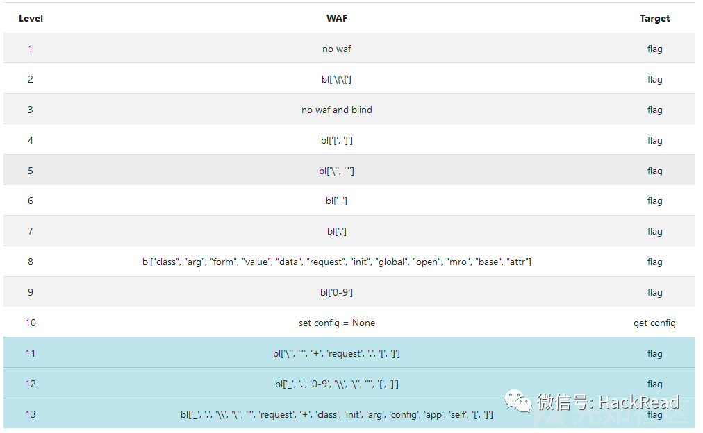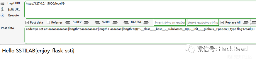 {{x|attr(request|attr(e)|attr(f)(g))|attr(request|attr(e)|attr(f)(gg))|attr(d)(request|attr(e)|attr(f)(ggg))|attr(d)(request|attr(e)|attr(f)(gggg))(request|attr(e)|attr(f)(ggggg))}}比上面过滤的更多关键字,但是我们依然可以使用上一关的思路