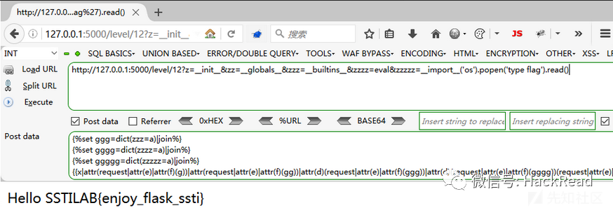 {{x|attr(dd)|attr(ddd)|attr(d)(dddd)|attr(d)(e)(ee)|attr(eee)(eeee)|attr(f)()}}这次总算是把flask框架的SSTI注入给弄的差不多了,以后遇见了也不会手忙脚乱了。继续加油吧!!!
