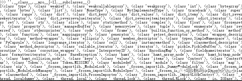 而我们注入就是通过拿到Object的子类,使用其中的一些函数,进行文件读取或者命令执行。__init__