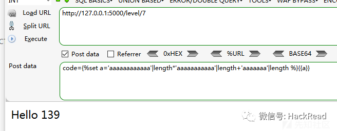 使用过滤器|length,来塑造。{%set a='aaaaaaaaaaaa'|length*'aaaaaaaaaaa'|length+'aaaaaaa'|length %}{{a}}