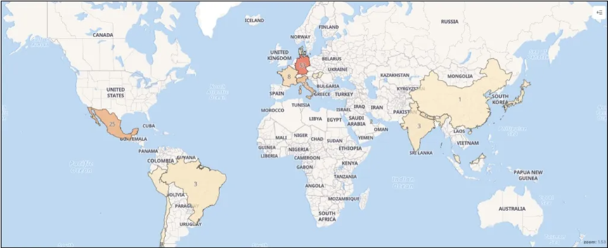 研究人员在 3 月 7 日发布的一条推文表明,Emotet 重新浮出水面,并使用 Epoch4 服务器分发包含大小超过 500MB 的恶意文档附件的垃圾邮件。根据我们在 2023 年 3 月 7 日至 3 月 9 日期间观察到的情报,Emotet 垃圾邮件机器人活动在地理上分散在超过 16 个国家/地区
