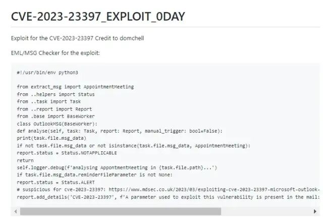 原文地址:https://blog.cyble.com/2023/03/16/microsoft-outlook-zero-day-vulnerability-cve-2023-23397-actively-exploited-in-the-wild/