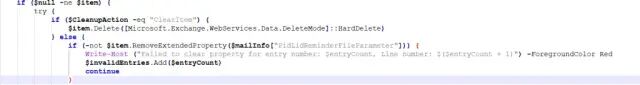 Microsoft提供了一个 PowerShell 脚本作为手头问题的解决方案。该脚本旨在扫描电子邮件、日历条目和任务项,并验证它们是否具有“ PidLidReminderFileParameter”属性。通过运行该脚本,管理员可以找到具有此属性的有问题的项目,然后将其删除或永久删除。