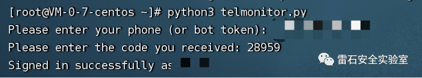 第一次执行时会让你登陆认证,注意这里手机号是需要加国际区号的,例如+86