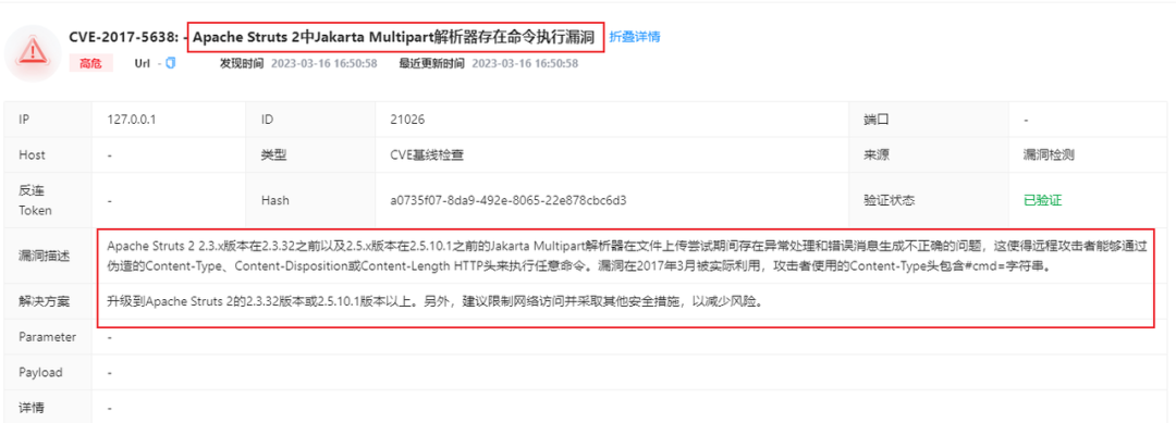 随后在漏洞风险中进行查看,可以明显感觉到让 Chatgpt总结的标题、漏洞描述、解决方案还是十分不错的,不会出现类似"春天靴子(Spring Boot)" 这样的耿直翻译……