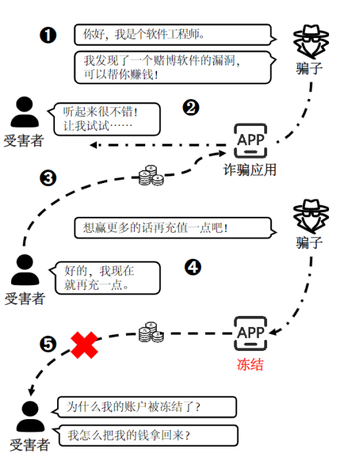 随着移动计算技术的发展,移动博彩诈骗案件在最近一段时间迅速增长。在移动博彩诈骗中,不法分子通过手机即时通讯发送诈骗信息,在手机软件上搭建诈骗博彩平台,使用移动支付获利。到目前为止,尽管每天由博彩诈骗造成的损失估计超过522,262美元,但关于这种网络犯罪是如何运作的量化分析却十分匮乏。