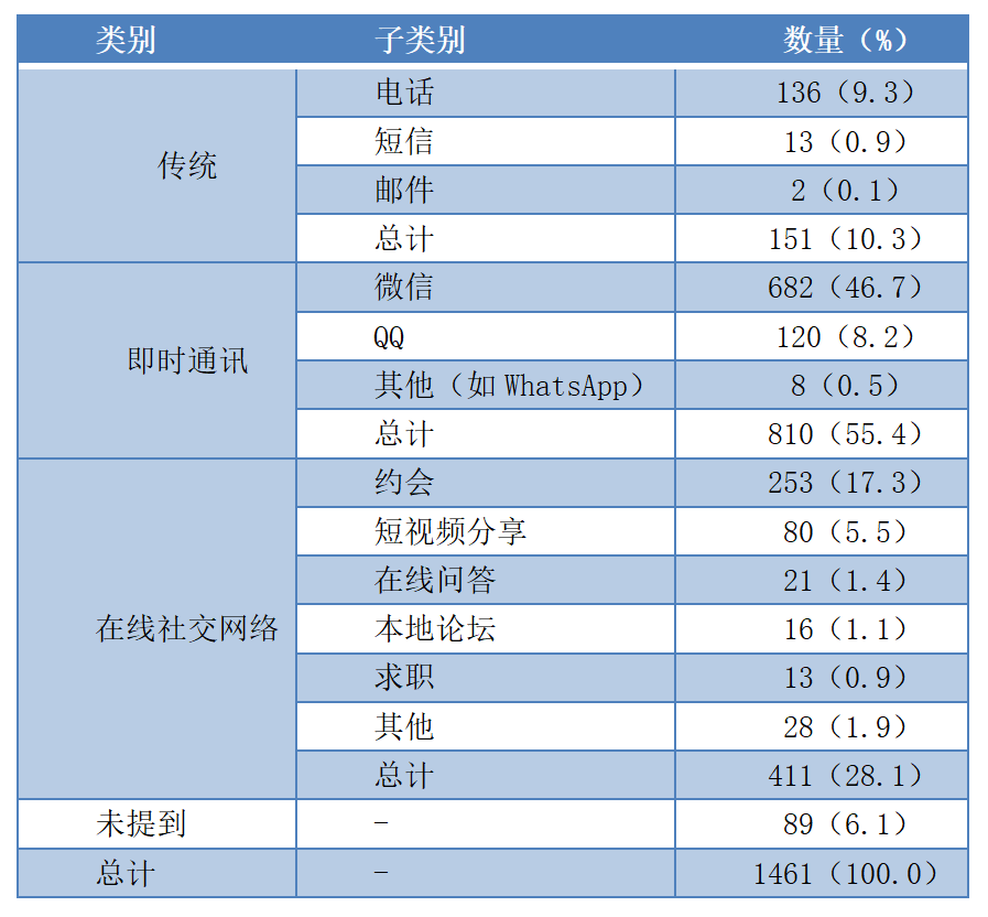 发现2:骗子更喜欢通过在线社交网络(OSN)寻找受害者并建立联系(如在线问答、求职)。