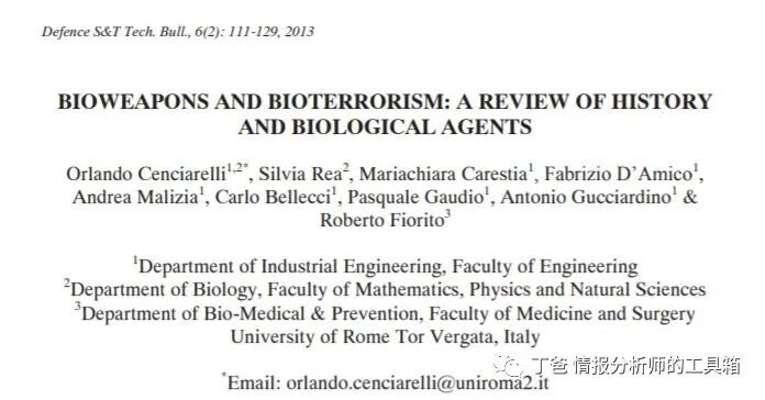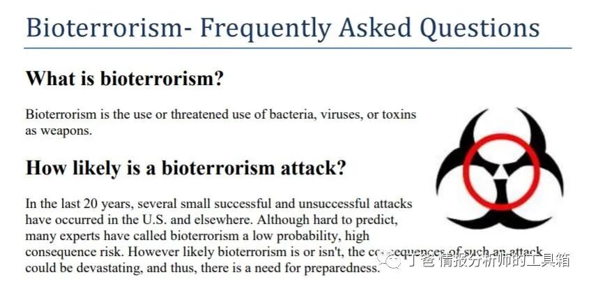 前天给大家分享了【资料】生物恐怖主义相关资料(1)