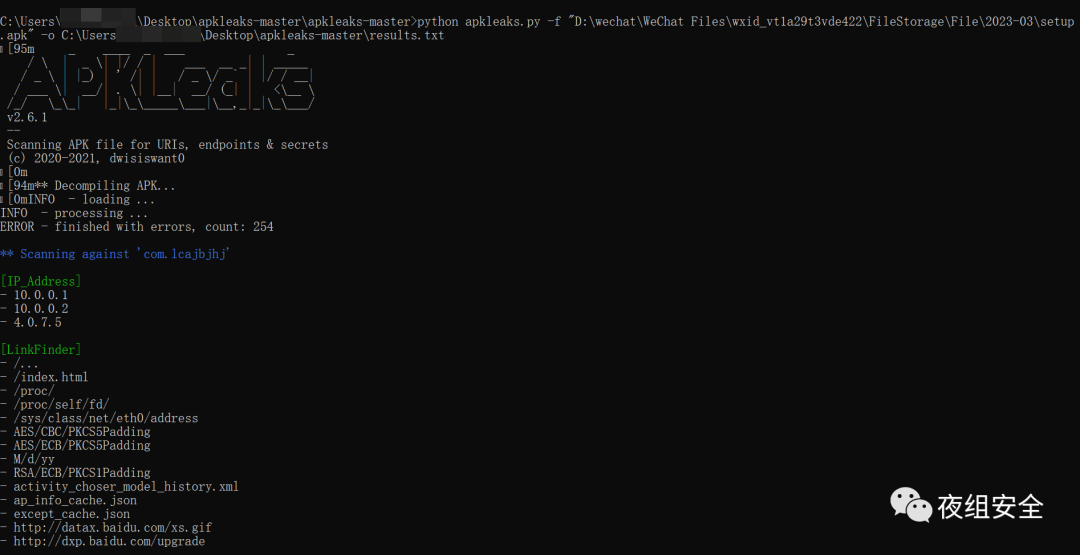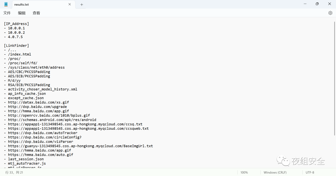 扫描APK文件中的URL、接口与密钥泄露等风险