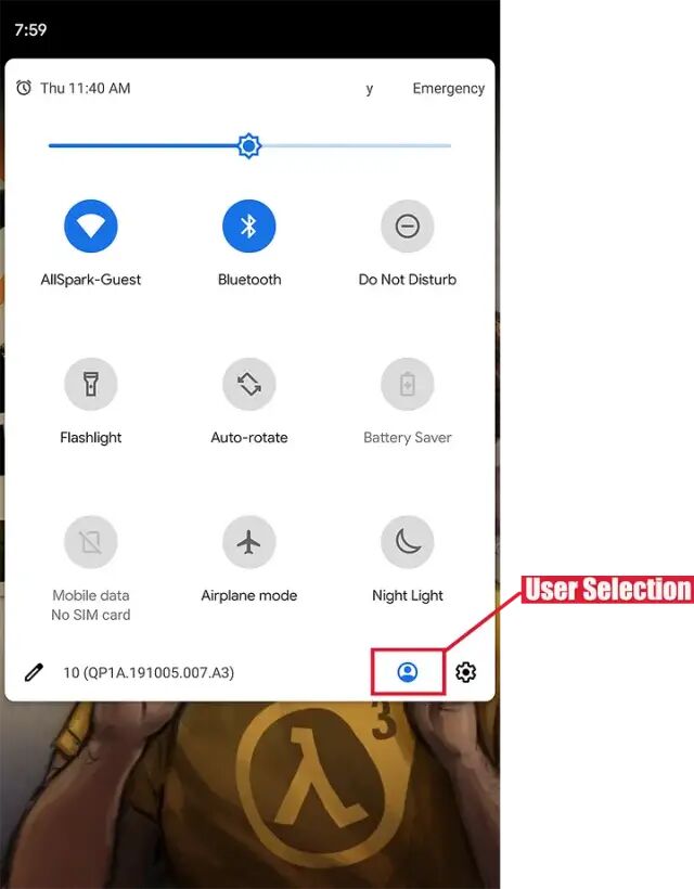 在锁定屏幕上,展开通知托盘并单击用户选择菜单图标。