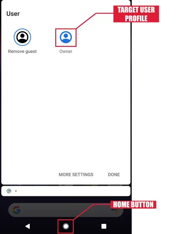 屏幕会出现“切换到用户”消息,但如果您启用了触觉反馈,您会感觉到设备在每次按下时都会振动,就好像设备仍在接收和处理输入一样。在振动反馈停止的过渡期间会有片刻。此时您可以停止按主页按钮。