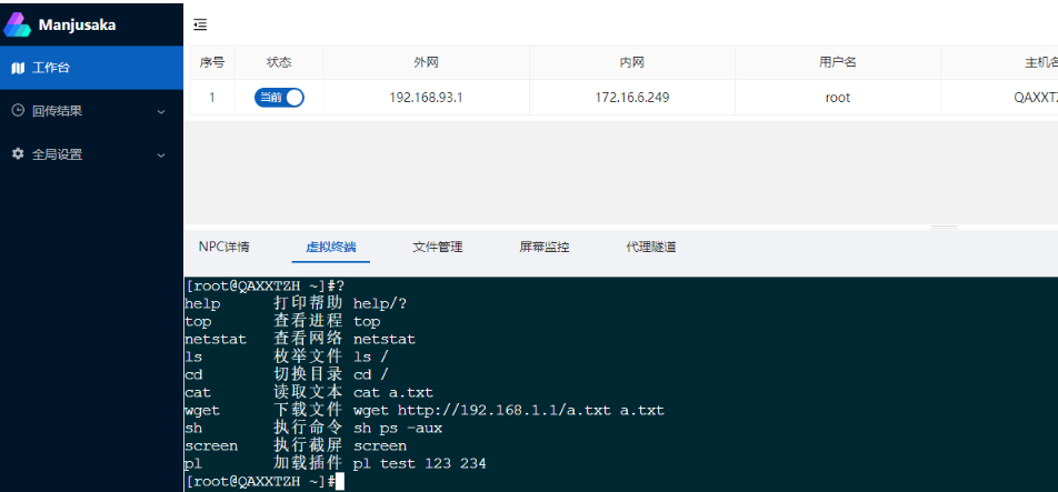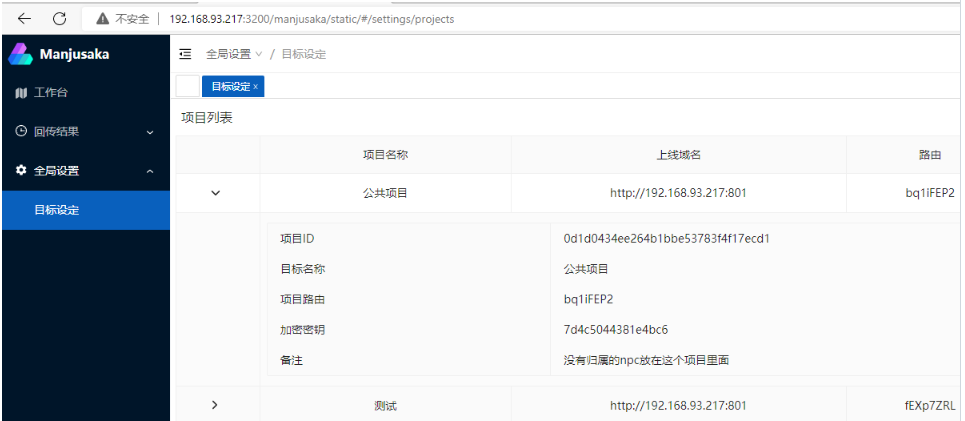 [[email protected] nps]# ./manjusaka[NPS] 2022/09/14 15:57:21 初始用户: manjusaka 密码: ZbFCa2L2LRd5[NPS] 2022/09/14 15:57:21 创建项目: 公共项目 没有归属的npc放在这个项目里面[NPS] 2022/09/14 15:57:21 监听项目路由: VHOS5vqN[NPS] 2022/09/14 15:57:21 NPS监听地址 :3200[NPS] 2022/09/14 15:57:21 NPU后台地址 : manjusaka[NPS] 2022/09/14 15:57:21 NPC监听地址 :801[NPS] 2022/09/14 15:57:21 NPC交互路由 : /:target/favicon.ico[NPS] 2022/09/14 15:57:21 NPC下载路由 : /:target/assert/:sys/bg.jpg[NPS] 2022/09/14 15:57:21 NPC文件路由 : /images/:fid/logo.png