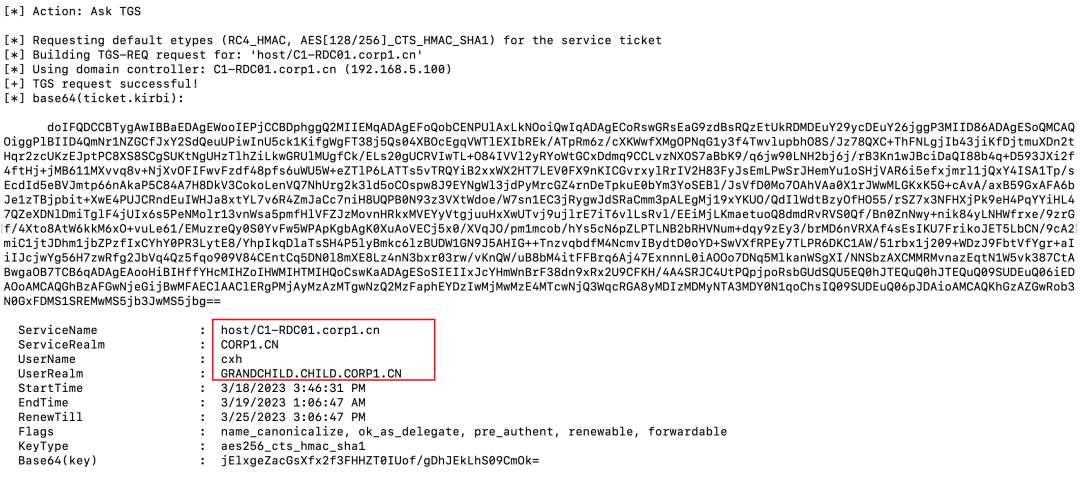 和之前referral的区别是,之前referral的ServiceRealm为corp2.hk,而这个"local" TGT的ServiceRealm为grandchild.child.corp1.cn。