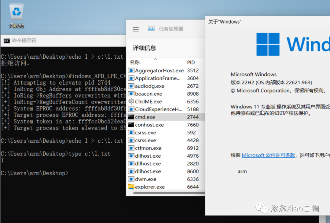 Windows_AFD_LPE_CVE-2023-21768_x64.exe <pid>其中<pid>是要提升的进程的进程ID(十进制)。