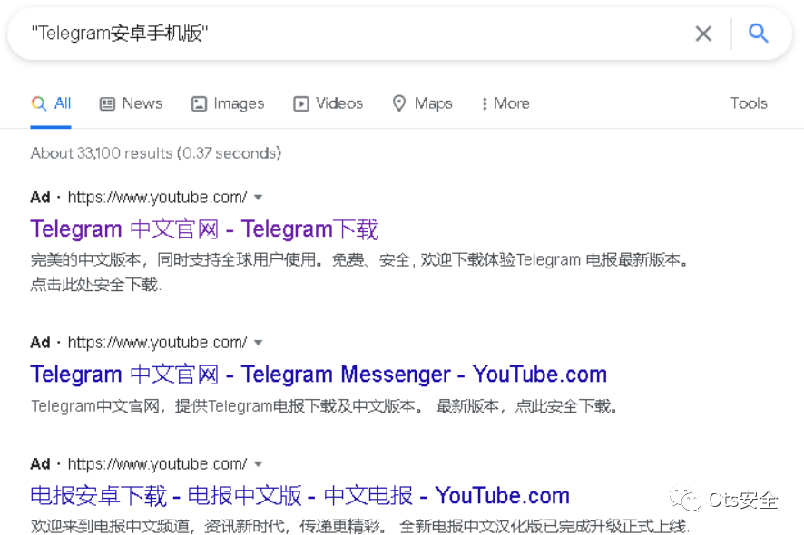 作为其分发策略的一部分,威胁行为者通过设置 Google Ads 创建虚假的 YouTube 频道,并通过这些广告将用户引导至欺诈性的 YouTube 频道。
