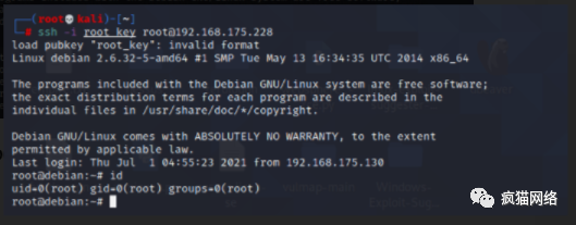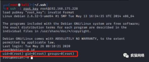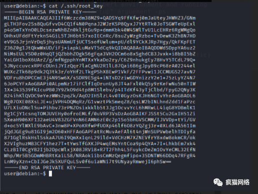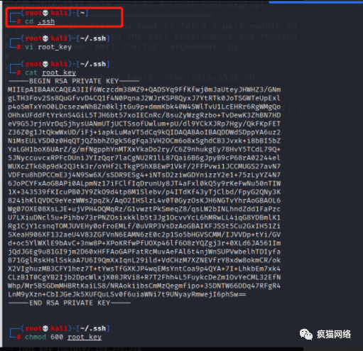 cat /.ssh/root_key3.将root_key文件复制到kali并加权以便 SSH 接受它: