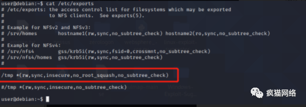 1.检查 /etc/exports 的内容,了解具有no_root_squash选项的配置: