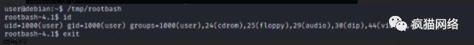 并且设置了SUID位,只需执行rootbash文件就可以生成root的shell