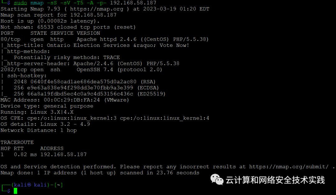 继续做端口扫描,sudo nmap -sS -sV -T5 -A -p- 192.168.58.187,
